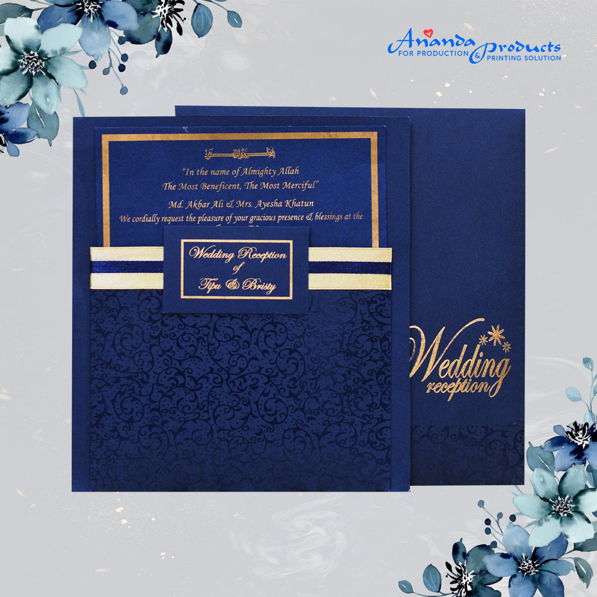 Be the first to review “Ananda Gold Blueish Wedding Card”